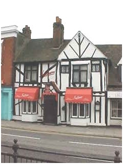 This is the Chantry, built in 1510 - originally a16C hall house but now considerably altered. There is original exposed timber framing to the front elevation. Now a restaurant. Christopher Martin of the “Mayflower” is said to have lived here.